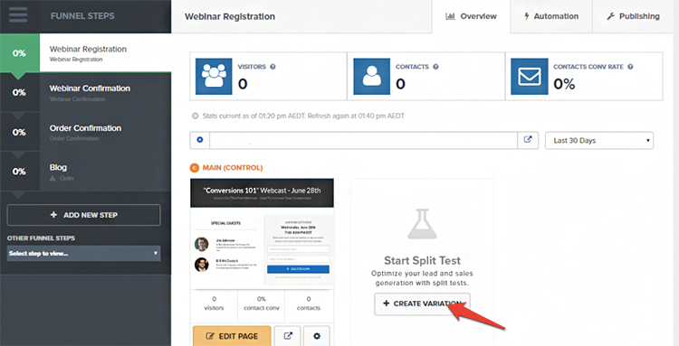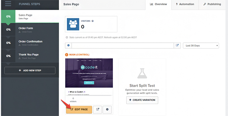 Create landing page variations and do a split-test with ClickFunnels. Designing your landing page is simplified whether you choose to make use of the available templates or design your landing pages from scratch!